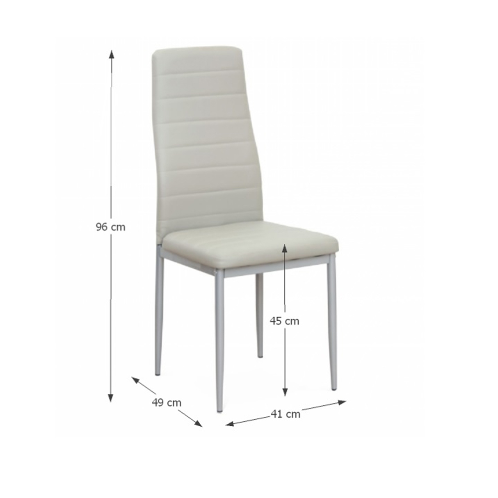 Jedálenská stolička s čalúnením z ekokože a sivým kovovým rámom.