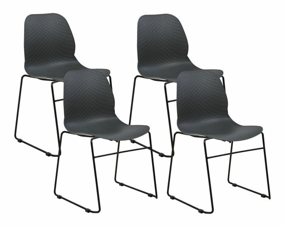 Dodajte svojej jedálni nádych modernej elegancie pomocou týchto stohovateľných stoličiek. Majú elegantné oceľové nohy a pohodlné sedadlá zo syntetického materiálu. Plastové podložky na nohách chránia podlahu pred poškriabaním a dizajn bez opierok rúk vám umožní stoličky ľahko zasunúť za stôl, keď sa práve nepoužívajú. Tieto stoličky sú ideálne do malých priestorov a minimalisticky zariadených interiérov. Ľahko sa čistia a sú odolné, takže sú ideálne na každodenné používanie.