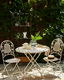 Dodajte svojmu balkónu alebo záhrade provensálsku atmosféru s touto elegantnou sadou štyroch stoličiek. Sú vyrobené zo železa s práškovým lakovaním a vyznačujú sa opotrebovaným, vintage efektom a ozdobným dizajnom s kvetinovými ornamentmi. Doplňte ich zodpovedajúcim stolíkom a vytvorte si dokonalý priestor na raňajky alebo obed v akomkoľvek vonkajšom prostredí. Stoličky sú skladacie, takže ich mimo sezóny môžete jednoducho uskladniť.