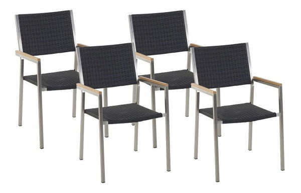 Set 4 ks záhradných stoličiek Giggles (čierny ratan)