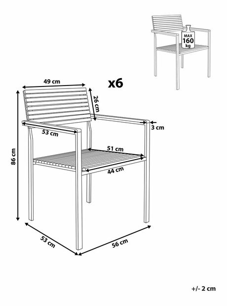 Elegantné záhradné jedálenské stoličky sú skvelým doplnkom každej modernej záhrady alebo terasy. Sú vyrobené z masívneho teakového dreva a brúsenej nehrdzavejúcej ocele, vďaka čomu sú mimoriadne odolné. Široké sedadlá, vysoké operadlá a opierky rúk zaručujú dokonalý komfort počas sedenia, či už si chcete vychutnať slnečné počasie alebo obedovať na záhrade. Dizajn stoličiek umožňuje ich stohovanie a ľahké skladovanie mimo sezóny.