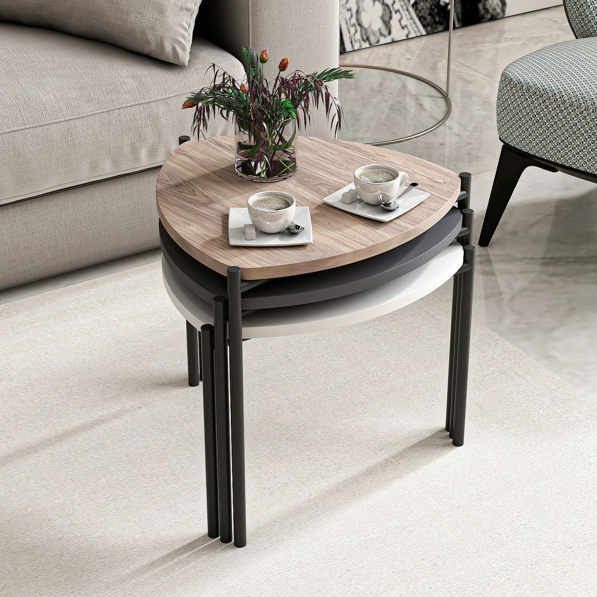 Set konferenčných stolíkov Lena 3 (Biela + Antracit + Orech)