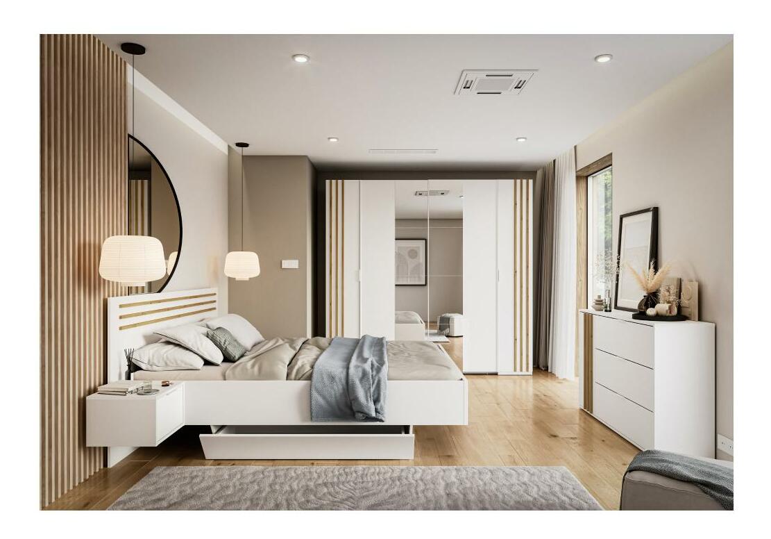 Set postel a 2 ks nočných stolíkov Frens (biela + dub artisan)