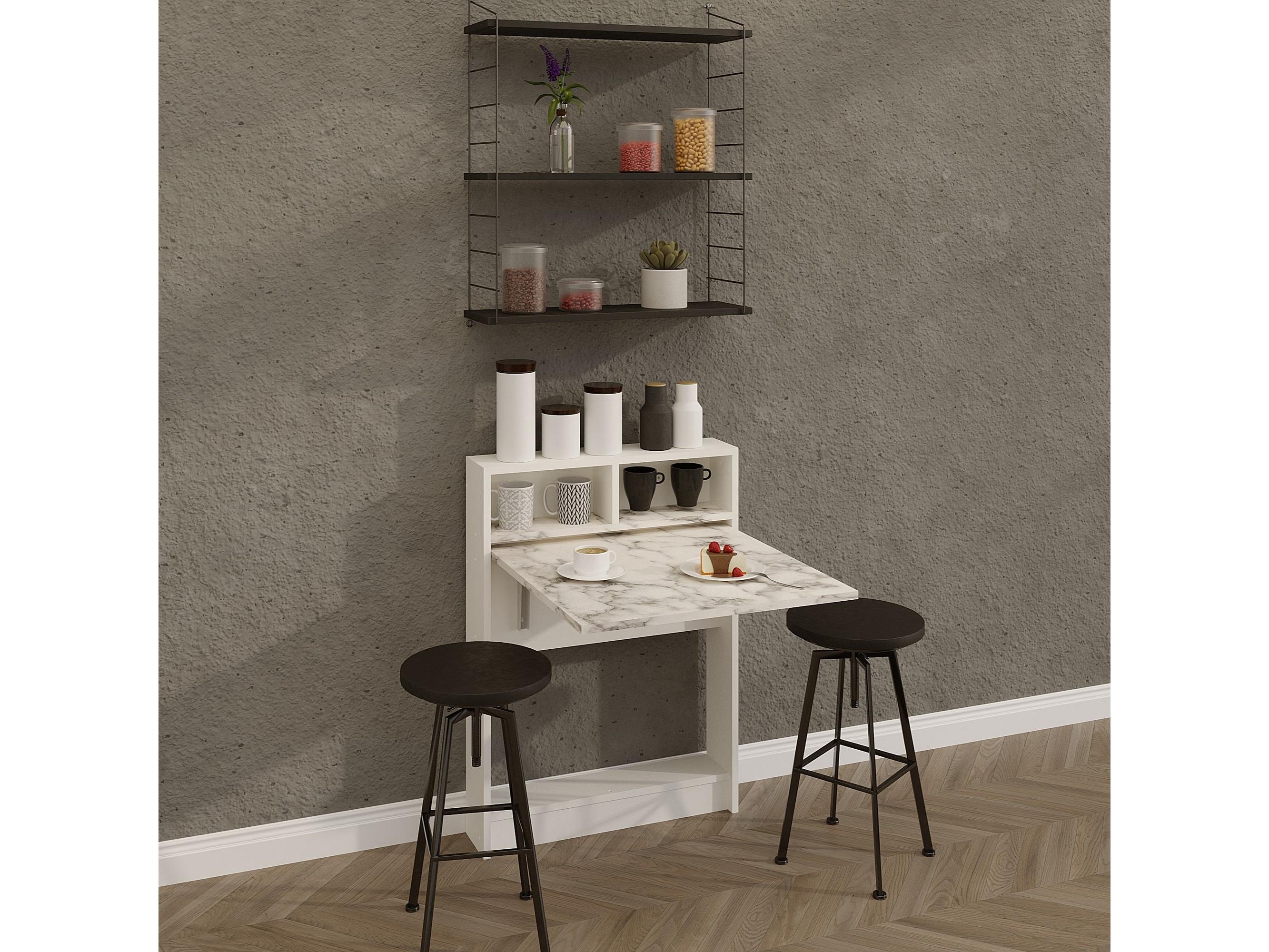 Sklápací jedálenský stôl Brackie (pre 2 osoby) (mramor carrara)