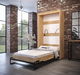 Sklápacia posteľ 120 Cassie (craft zlatý + čierna matná) (vertikálna) (s osvetlením) s výškou 221 cm a hĺbkou 46/235 cm je ideálnym riešením pre tých, ktorí nemajú dostatok miesta na veľkú posteľ. Tento nábytok slúži ako elegantná komoda počas dňa a pohodlná posteľ počas noci. K dispozícii je v niekoľkých farebných variantoch a veľkostiach s plochou na spanie 120x200 cm. Posteľ disponuje úložným priestorom na posteľnú bielizeň, ktorý sa nachádza pod matracom a roštom s výškou 18 cm. Korpus postele je vyrobený z dosky s hrúbkou 22 mm a predná časť je z dosky s hrúbkou 16 mm. Zadná časť je tvorená HDF doskou a nožičky sú z kovu. Mechanizmus posteľe umožňuje jej sklopenie a otvorenie s použitím pružinového systému. Rošt je vyrobený z preglejkovej drevenej rolované dosky s nosnosťou 100 kg. Lemovanie je ukončené odolnou PVC dyhou a posteľ disponuje popruhami na upevnenie posteľnej bielizne pred zatvorením postele. Posteľ je tiež vybavená zámkom pre bezpečné otváranie. Produkt obsahuje LED osvetlenie a je dodávaný bez matraca. Pre tento typ postele sa odporúča bonellový matrac s maximálnou hrúbkou 19 cm. Technická poznámka Nr. 1 hovorí o nutnosti pripevnenia poloposteľe k murovanej stene pomocou špeciálnych držiakov a technická poznámka č.2 hovorí o nemožnosti inštalácie postele na sadrokarónový múr.