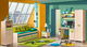 Sektorová zostava svojim dizajnom vhodná do detských a študentských izieb. Veselá kombinácia svetlej farby dreva dub mliečny je kombinovaná zelenou alebo oranžovou farbou a rozjasní každý priestor. V sektore sa nachádza množstvo prvkov, z ktorých si hravo vyskladáte izbu podľa Vašich predstáv. Materiál použitý na výrobu je laminovaná DTD. Hrany sú ukončené ABS úpravou, ktorá zvyšuje odolnosť voči mechanickému poškodeniu, udržuje farebnú stálosť a odolnosť proti vlhkosti. Všetky komponenty okrem postele sú postavené na nožičkách.