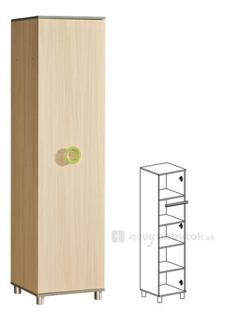 Skriňa so štyrmi poličkami. V prípade potreby je možné spodné tri poličky vybrať a umiestniť do nej vešiakovú tyč.