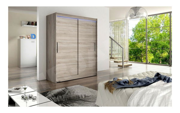 ZobraziťŠatníková skriňa Primrose zapadne do obývacej izby alebo spálne. Predné fronty majú ozdobné zrkadlá, ktoré vizuálne zväčšia miestnosť. Šatník je vybavený hliníkovým systémom posuvných dverí. Všetky časti oblečenia môžu byť zavesené na namontovanú tyč na vešiaky a uložené na priestranné police. Do skrine do spálne sa dajú umiestniť aj väčšie predmety, ako sú kufre alebo sezónna obuv. Nábytok bol vyrobený z laminovanej dosky.