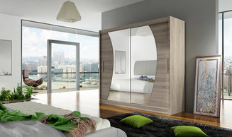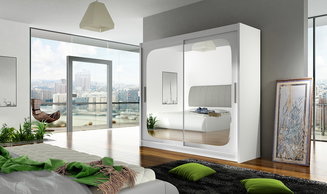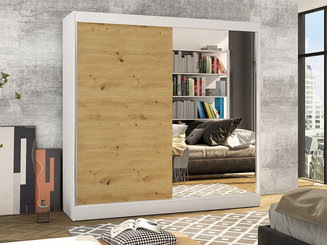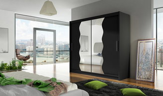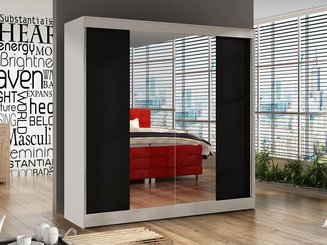 Šatníková skriňa Fioren (čierna) (so zrkadlom)
