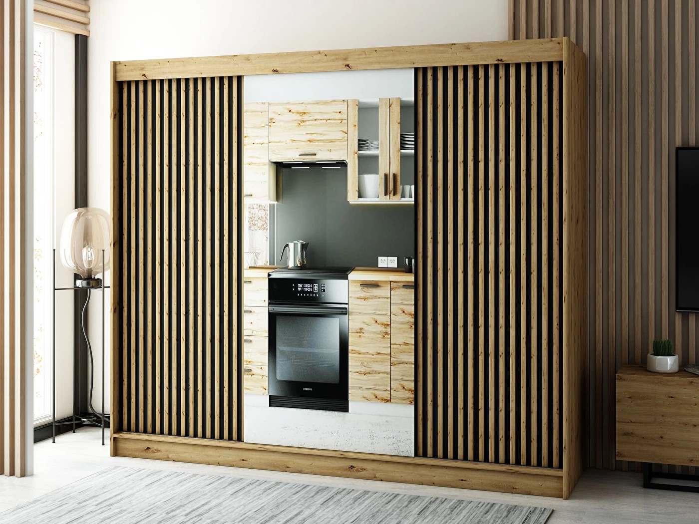 Je už len na vašej preferencii, ktorý druh sa hodí práve vám. Ako sme spomenuli vyššie, mnohé modely majú na stredných dverách zrkadlo. Tieto skrine odrážajú svetlo, čiže opticky presvetlia celý priestor. V našej ponuke však nájdete aj modely bez zrkadla. Pozor na tmavšie prevedenia, ktoré by mohli spôsobiť veľké “zaťaženie” celej izby.