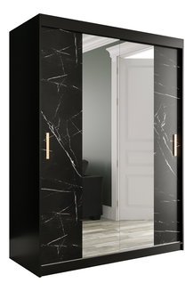 Šatníková skriňa s posuvnými dverami Liff 26 (lesk čierny) (so zrkadlom)