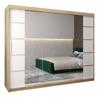 Šatníková skriňa s posuvnými dverami BRW Flex 5 (dub sonoma + biela) (so zrkadlom)
