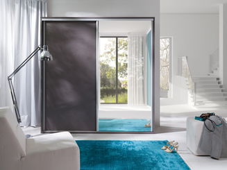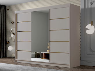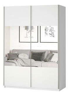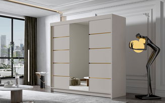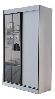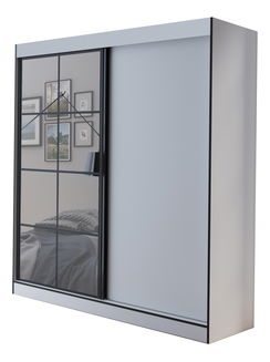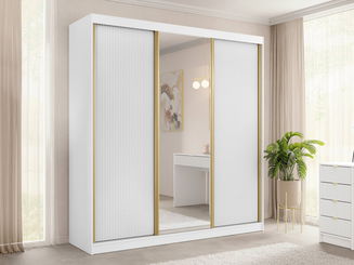 Šatníková skriňa s posuvnými dverami BRW Tetrix 32 (lesk biely) (so zrkadlom)