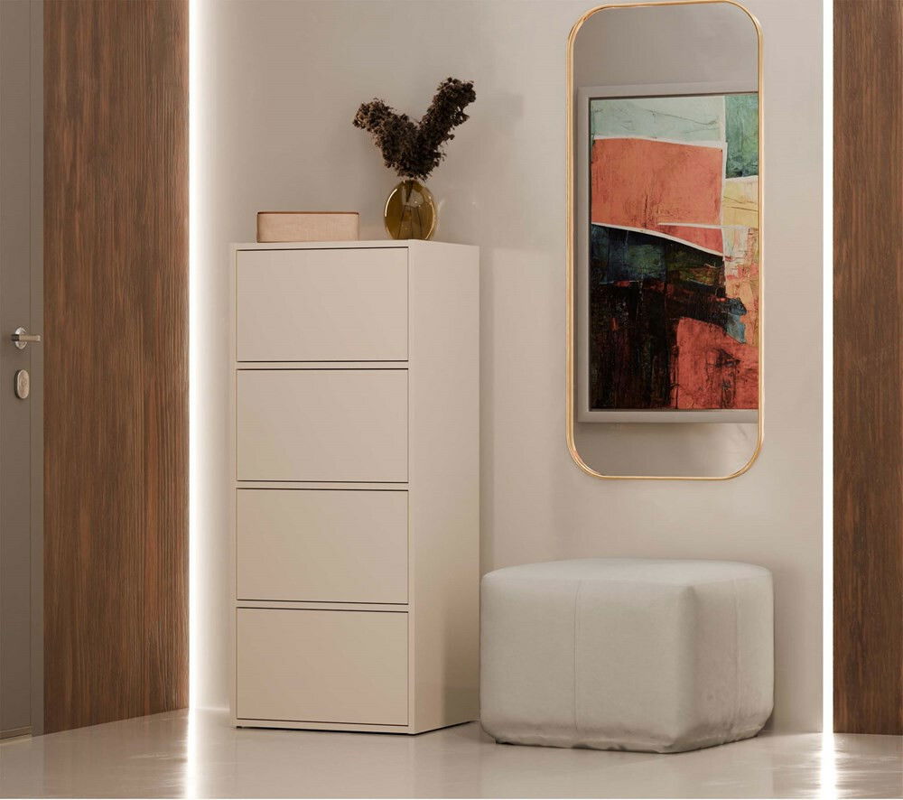 ZobraziťSkrinka Afoctera 1 v elegantnej kašmírovej farbe je ideálnym riešením pre moderné interiéry, kde sa stretáva funkčnosť s estetikou. Jej minimalistický dizajn a bezuchvytový systém TIP-ON umožňujú jednoduché otváranie, pričom poskytuje dostatok úložného priestoru vďaka štyrom dverám s vnútornými poličkami. Vyrobená z laminovanej drevotrieskovej dosky, je odolná voči poškriabaniu a ľahko sa udržiava. Skrinka Afoctera 1 je skvelou voľbou pre každú miestnosť, pričom dodáva priestoru nádych elegancie a moderného štýlu.