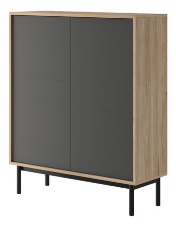 Vnútro skrinky je rozdelená na tri časti, ktoré sú rovnako veľké. Široká skrinka ponúkne veľké množstvo úložného priestor aj vďaka tomu že poličky majú rovnakú veľkosť. Dvierka sa otvárajú systémom push to open. Viditeľné časti sú ohranované ABS hranou.