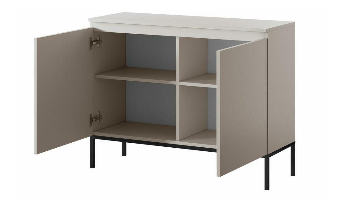 ZobraziťHľadáte nábytok, ktorý má jednoduchú formu a dokonale zapadne do väčšiny aranžmánov? Potom vás určite zaujme kolekcia Dvojdverová komoda je univerzálneho tvaru, umiestnená na úzkych oceľových nožičkách, ktoré dodávajú celku vizuálnu ľahkosť. Kombinácia prírodnej béžovej s čiernymi nožičkami dokonale zapadne nielen do minimalistického, ale aj moderného a atmosférického interiéru s nádychom glamour. Priestor vo vnútri nábytku je rozdelený na štyri praktické police, do ktorých sa úspešne zmestia všetky vaše veci. Výhodou nábytku sú vysoké nohy, ktoré bez problémov umožnia čistenie pod nábytkom, aj pre čistiace roboty Detaily: nábytok z drevotriesky 16 mm, podnož: oceľový profil 18x18 mm, prášk lakovaná v čiernej farbe, maximálne zaťaženie police: 5. kg,