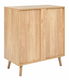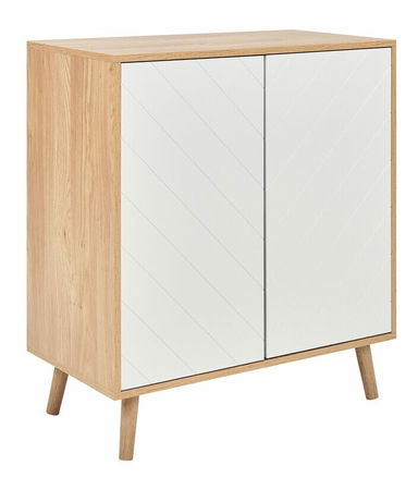 Táto elegantná skrinka v minimalistickom škandinávskom štýle je ideálnym doplnkom do každého moderného interiéru. Je vyrobená z odolného MDF materiálu a drevotrieskovej dosky, takže si nevyžaduje každodennú údržbu a vydrží dlhé roky. Za dvierkami sú umiestnené priestranné police, ktoré sú ideálne na odkladanie oblečenia, doplnkov alebo rôznych drobností.