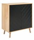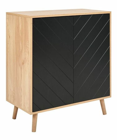 Táto elegantná komoda v minimalistickom škandinávskom štýle je ideálnym doplnkom do každého moderného interiéru. Je vyrobená z odolného MDF materiálu a drevotrieskovej dosky, takže si nevyžaduje každodennú údržbu a vydrží dlhé roky. Za dvierkami sú umiestnené priestranné police, ktoré sú ideálne na odkladanie oblečenia, doplnkov alebo rôznych drobností.