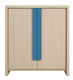 Dvojdverová skrinka vo farbe dub jasný belluno s výberom dvoch farieb lištových úchytok: modrá, ružová.