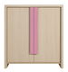 Dvojdverová skrinka vo farbe dub jasný belluno s výberom dvoch farieb lištových úchytok: modrá, ružová.