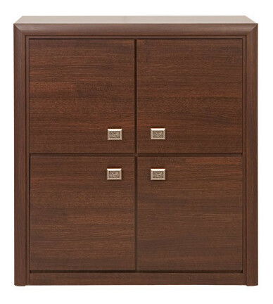 Skrinka so štyrmi štvorcovými dvierkami, zaoblenými lištami a zdobenými obdĺžnikovými úchytmi. Toto spojenie prinesie do vašich domácností vznešenosť a eleganciu. Skrinka má vo vnútri poličky.