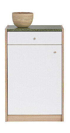 Jasný dub dáva teplo, z lesku bieloby vyžaruje modernosť, tráva oživuje a dodáva fantáziu. Šedý sokl zdôrazňuje grafiku foriem. Závisle od voľby úchytov a zostavenia dekórov v doskách, čelách a sokloch, 15 prvkov systému umožnuje hráť proporciami dojmov.