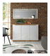 Táto trojdverová komoda je rozdelená na 3 časti. V každej časti sa nachádza 1 polica. Originálne upravená vrchná časť čela nahrádza rukoväte k jednoduchému otváraniu dvierok. Dodávaná v demonte.
