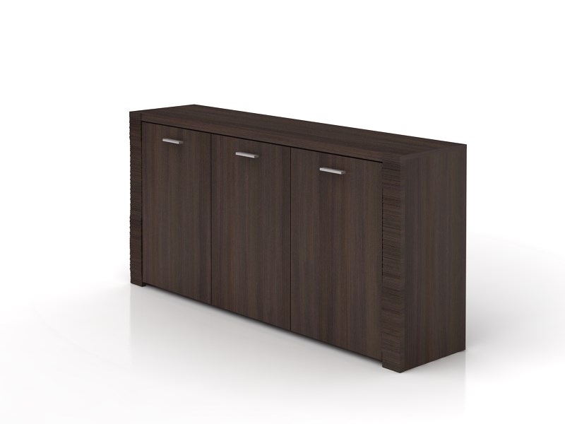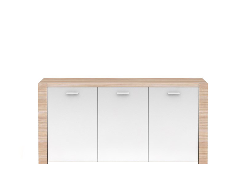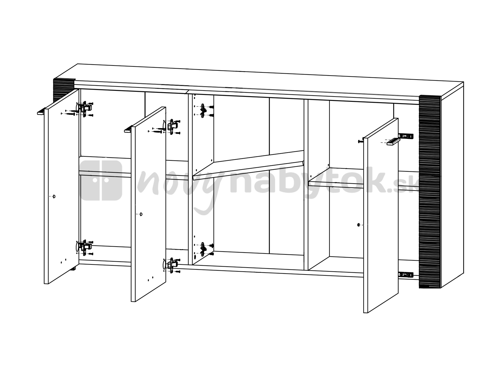 Trojdverová skrínka so šiestimi poličkami vo vnútri.