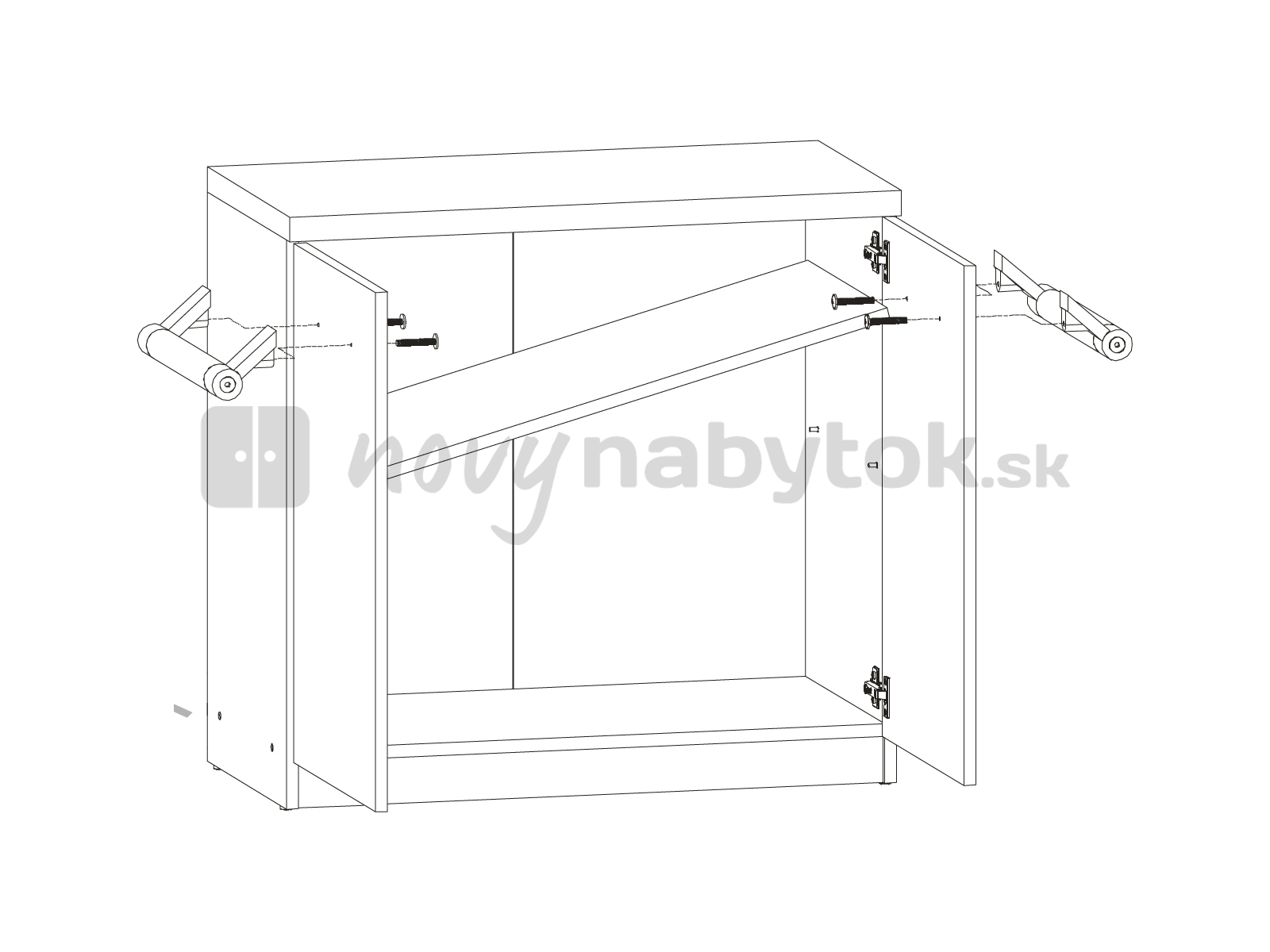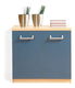 Mládežnícky komplet. V dvoch farebných prevedeniach: javor a javor / modrý. Písací stolík obsahuje hrubšiu pracovnú dosku. Jednoduché masívne úchytky v striebornej farbe.
