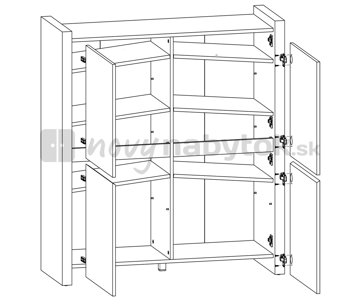 Praktická skrinka KOM4D zo série Venom mix značky BRW je k dispozícií v elegantnom dizajne. Skrinka obsahuje 4 dvierka, každý priestor je oddelený vodorovnou poličkou, čo Vám poskytne dokopy 8 oddelených priestorov. Skrinka je vo farebnom prevedení dubového dreva a dvierka sú v krásnej šedej farbe, čo dotvára elegantný a moderný dizajn.