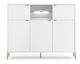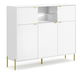Ste milovníkom klasického nábytku s nádychom moderny? Ak je odpoveď áno, odporúčame päťdverovú komodu z kolekcie , ktorá dodá nevšednú eleganciu každej miestnosti Predstavujeme päťdverovú komodu v elegantnom štýle! Rafinovaný a jednoduchý tvar vyzerá perfektne! Má sklenenú policu, ktorá vám umožní vystaviť suveníry a dekorácie, a päť uzamykateľných skriniek uľahčí prístup ku všetkému, čo chcete mať po ruke, ale nie nevyhnutne na očiach. Čelá komody sú vyrobené z MDF dosky, korpus je vyrobený z drevotriesky potiahnutej melamínom. Drážkovaná predná časť a kvé nožičky a rúčky zlatej farby mu dodávajú jedinečný charakter. Nábytok je navyše vybavený LED osvetlením a systémom tichého zatvárania Detaily produktu: korpus vyrobený z melamínovej drevotriesky hrúbky 16 mm, ktorá zaručuje odolnosť proti vlhkosti a poškodeniu, drážkované čelá z MDF dosky hrúbky 18 mm, farba: biela, povrchová úprava. : matný (korpus) a lesklý (čelá), kvé nožičky a úchytky zlatej farby, hrany vystužené ABS hranami, systém tichého zatvárania, LED osvetlenie ako štandard Dodajte svojej obývačke šik ešte dnes!