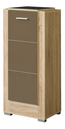 Skrinka pekného moderného dizajnu na drobnosti a doplnky, ktorá sa Vám zíde najmä v obývacej izbe, pracovni, predsieni alebo spálni.Skrinka má moderné ozdobné segmenty. Dvierka skrinky majú široký úchyt.