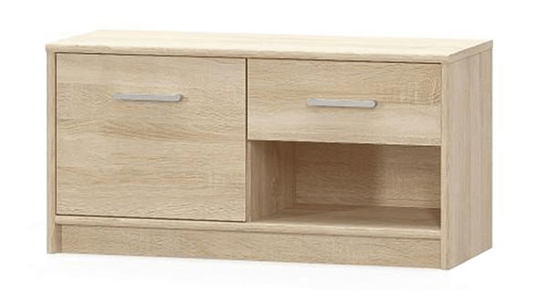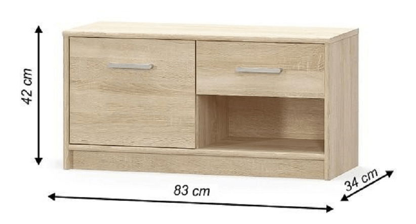 ZobraziťMenšia jednoduchá komoda s dvierkami, zásuvkou a otvorenou poličkou v peknom farebnom prevedení dub sonoma. Komoda sa hodí do detskej alebo študentskej izby. Komoda ponúka úložný priestor v podobe jednej zásuvky, jednej skrinky a otvorenej poličky.