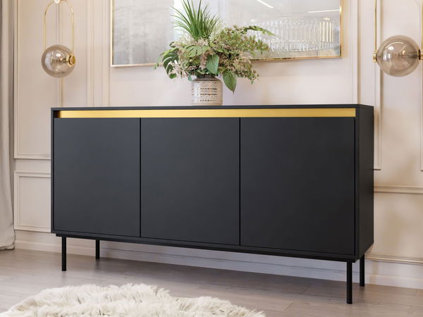 Moderná skrinka Gelean 3D je elegantnou voľbou do obývačky, spálne aj predsiene. Uisťujeme vás, že bude lahodiť oku dlhé roky. Jednoduchý tvar je obohatený o zlaté prvky a subtílne nožičky, ktoré dodávajú nábytku ľahkosť. Skrinka poskytuje množstvo úložného priestoru navyše. Model ponúka bohatý interiér vybavený šiestimi priestrannými policami. Pre pridanie triedy a modernosti bolo použité otváranie za pomoci predných frontov.