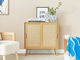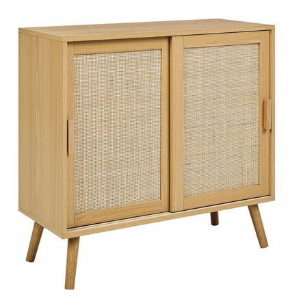 S touto komodou bude uskladnenie oblečenia alebo iných drobností jednoduché. Je vyrobená z odolnej drevotriesky a vyžaduje si len minimálnu údržbu, aby vydržala roky. Jej výnimočnou prednosťou je vzhľad, pretože má dve posuvné dvierka s predným dielom z ratanového prútia, vďaka ktorému je neprehliadnuteľná. Navyše sa dokonale hodí k širokej škále štýlov interiérového dizajnu – od boho a rustikálneho až po moderný.