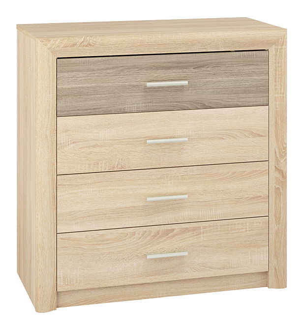 kolekcia vyrobená z laminovaných dosiek vo veľmi módnej farbe svetlého Dubu sonoma, ktorá bola spojená s ryhovanou MDF vložkou vo farbe Dub sonoma hľuzovka. Široké, zakrivené MDF rámčeky okolo tela zdôrazňujú to, čo je pre tento projekt najdôležitejšie - spoľahlivosť pri súčasnej jemnosti, ktorá sa osvedčí v každom interiéri domácnosti. Eleganciu pridáva nábytku trojbodové LED osvetlenie a úchyty v farbe šampanskej, predstavujúce ideálne dokončenie tejto rázu plnej kolekcie.