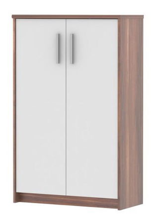 Šikovná dvojdverová skrinka Jove, ktorá ukrýva dostatok úložného priestoru. Vybavíte ňou vaše pracovne a kancelárie. Dvierka skrinky majú kovové úchyty. Dodáva sa v peknom prevedení slivka v kombinácii s bielou.