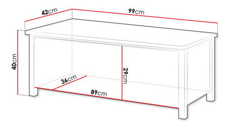 dĺžka - 89,5 cm, šírka - 36,5 cm, výška - 29,5 cm