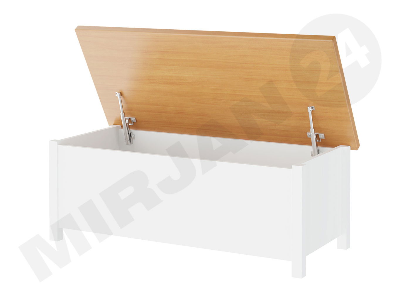 ZobraziťSkrinka je ideálnou voľbou pre tých, ktorí hľadajú pohodlie a štýl. Skrinka na posteľnú bielizeň a hračky z kolekcie Story je ideálna do spálne, chodby a miestnosti pre mládež. Šikovne navrhnuté telo uľahčuje umiestnenie skrinky aj v malej miestnosti. Svetlé farby, vkusný tvar a klasická forma štýlovo zdôraznia charakter vášho interiéru. Objavte silu možností nenápadného kusu nábytku, nechajte sa ohromiť funkčnosťou skrinky na posteľnú bielizeň a hračky. Rozmery: šírka: 99 cm, výška: 39 cm, hĺbka: 42 cm vnitřek truhly: délka - 89,5 cm, šířka - 36,5 cm, výška - 29,5 cm Farby: možnosť výberu farieb tu Vyrobené: korpus a dvierka: laminovaná drevotriesková doska, hranovacia páska papierová zadná stena je z drevovláknitých HDF dosiek 3mm, závesy kovové, plastové úchytky (okrúhle), typ podložky : protišmyková podložka, Rozmery výrobku sú uvedené v centimetroch a môžu sa líšiť od skutočných o ± 3 cm. Rozmery nábytku nemeníme na prianie zákazníka Záručná doba: 24 mesiacov