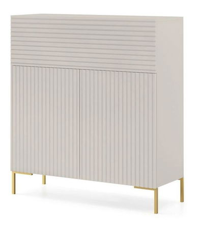 ZobraziťSnívate o modernej obývačke ako z časopisov o interiérm dizajne? To je absolútne možné s kolekciou nábytku Dvojdverová komoda je náš jedinečný projekt, ktorý upúta pozornosť každého. Nábytok sa vyznačuje klasickou formou obohatenou o módne frézovanie na čelách, ktoré dodáva celku jedinečný charakter. Výhodou komody sú úzke a vysoké nohy, vyrobené z prášk lakovanej ocele - korpus vďaka nim získava nielen pohľadovú ľahkosť, ale aj stabilitu. Navyše toto riešenie uľahčí udržiavanie čistoty pod nábytkom. Vnútro je rozdelené do štyroch políc, ktoré môžete využiť na uloženie oblečenia, dokumentov alebo drobností, na ktoré vám zvyčajne chýba miesto Podrobnosti o produkte: skrinka je vyrobená z 16mm laminovanej dosky U750 ST9 Grey Taupe, ktorá je odolná voči vlhkosti. a škrabancov, čo zaistí dlhé používanie, zlaté nohy sú vyrobené z prášk lakovanej ocele, vďaka čomu sú hladké, bez šmúh a bublín, lišty na prednej strane sú vyrobené z MDF.