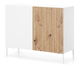 Snívate o modernej obývačke ako z časopisov o interiérm dizajne? S kolekciou nábytku je to absolútne možné! Dvojdverová komoda je náš jedinečný dizajn, ktorý upúta pozornosť každého. Nábytok sa vyznačuje klasickou formou, obohatenou o módne frézovanie na jednej čelnej strane, vo farbe dub, čo dodáva celku jedinečný charakter. Výhodou komody sú úzke a vysoké nohy, vyrobené z prášk lakovanej ocele - korpus vďaka nim získava nielen pohľadovú ľahkosť, ale aj stabilitu. Navyše toto riešenie uľahčí udržiavanie čistoty pod nábytkom. Vnútro je rozdelené do štyroch políc, ktoré môžete využiť na uloženie oblečenia, dokumentov alebo drobností, na ktoré vám zvyčajne chýba miesto. Detaily produktu: skrinka je vyrobená z 16mm laminovanej dosky, ktorá je odolná voči vlhkosti a poškriabaniu, čo zaisťuje dlhé používanie, biele nohy sú vyrobené z prášk lakovanej ocele, vďaka čomu sú hladké, bez šmúh a bublín, lamely na prednej strane sú vyrobené z MDF, farba korpusu: biela, farba prednej strany: biela + dub.