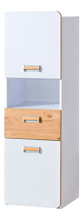 Skrinka Lavendon L4 (Dub Nash + Lesk Biely) s výškou 144 cm a hĺbkou 40 cm je úzka menšia komoda ideálna na uskladnenie kníh, hračiek alebo iných drobností. Je vhodná do detských a študentských izieb vďaka veselému dizajnu s farebnými okrajmi a frontom zásuvky. Komoda má dvere, zásuvku a otvorenú poličku s podlhovastými úchytkami. Modelový rad Lavendon je určený pre deti a tínedžerov s aktívnym životným štýlom. Svieži moderný dizajn s jaseňom Coimbra v kombinácii so žiarivými farebnými prvkami a ozdobnými farebnými okrajmi. Vyčnievajúce dvierka s zaoblenými rohmi, či už v šatníkových skriňach, komodách, regáloch, PC stolíkoch, poličkách alebo pohodlných posteľách, vytvoria v detskej alebo študentskej izbe príjemnú atmosféru.
