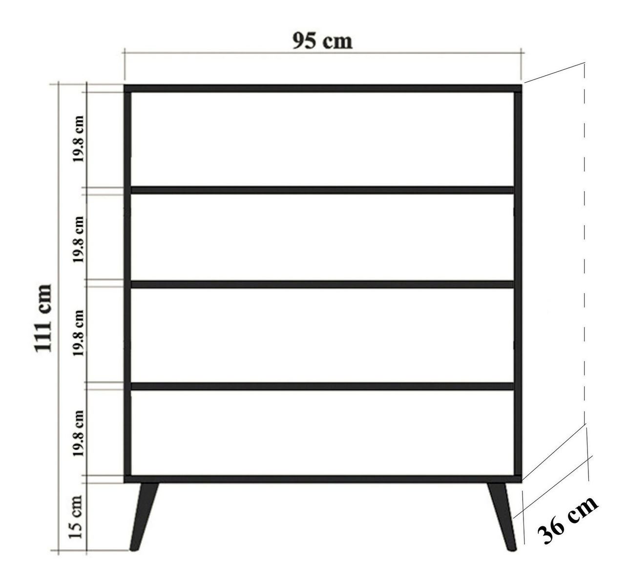 hrúbka: 18 mm, hrabové nohy, kovové rukoväte, uv náter, šírka: 95 cm, výška: 111 cm, hĺbka: 36 cm, výška police: 19,8 cm, výška nohy: 15 cm