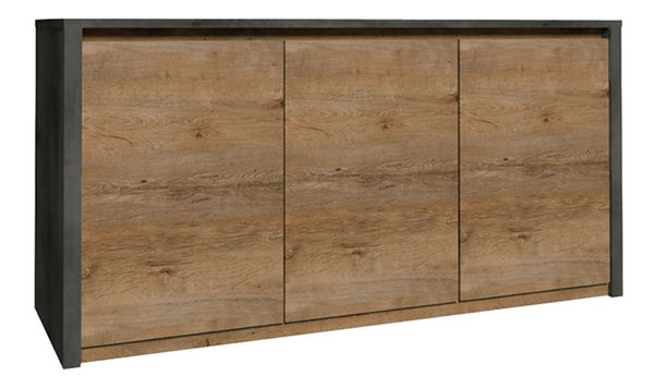 Komoda Modestus K3D je trojdverová. Za dvierkami sa nachádza polica. Ohromujúco pôsobí moderný dizajn bez úchytiek.
