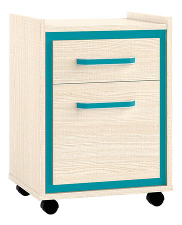 Skrinka na kolieskach so zásuvkou a dvierkami. Je vhodná k PC stolíku.