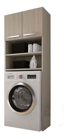Skrinka na práčku Lakia (dub sonoma) s výškou 183 cm a hĺbkou 30 cm vám umožní dokonalú úsporu miesta aj v malých kúpeľniach. Tento nábytok poskytuje nielen miesto na práčku, ale aj odkladacie police nad ňou, čím získate viac úložného priestoru. Skrinka sa skladá z miesta na práčku, dvoch políc a vrchnej uzatvorenej skrinky. Všetky diely sú vyrobené z hrubej laminovanej dosky o hrúbke 16 mm a skrinka má plastové úchytky. Okrem dvoch polic, ktoré sú skryté za dvierkami, má skrinka aj ďalšie dve nekryté police. Produkt je dodávaný v balení, v ktorom nájdete všetky potrebné diely na samostatnú montáž vrátane návodu na montáž.