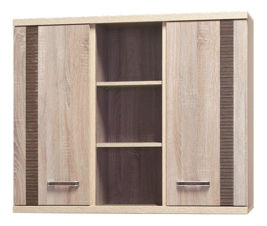 Skrinka na stenu s dvomi dvierkami a otvoreným úložným priestorom.