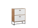Ak hľadáte tradičný nábytok s moderným nádychom, táto komoda je skvelou voľbou. Je vyrobená z odolného MDF a stojí na stabilnom čiernom kovovom podstavci. Komoda má 2 police uzavreté dverami, ktoré poskytujú dostatok úložného priestoru, vďaka čomu je mimoriadne praktická. Dokonale spracované detaily, ako sú úchytky z umelej kože a matná predná strana s jemným vzorom, sú pútavé a dodávajú komode jedinečný vzhľad.