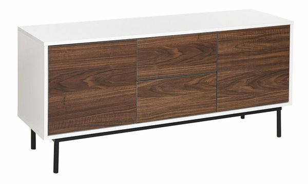 Vylepšite štýl svojho interiéru touto praktickou komodou. Vďaka kvalitnej konštrukcii z MDF materiálu s oceľovými nohami je odolná a nenáročná na údržbu. Kombinácia bielej farby a farby tmavého dreva robí z tejto komody dokonalý doplnok do každého moderného či tradičného interiéru. Dve skrinky s policami a zásuvkami ponúkajú dostatok úložného priestoru a pomôžu vám udržať poriadok v interiéri.