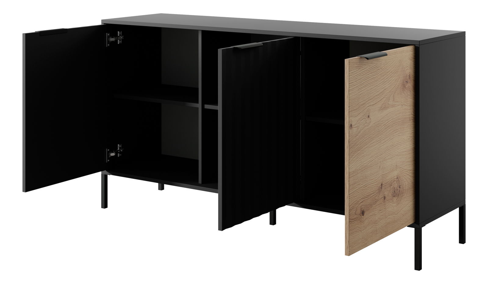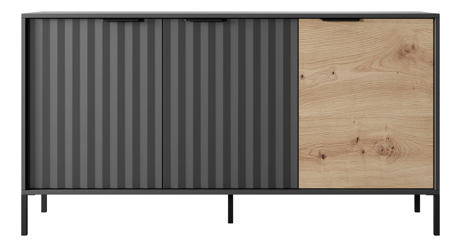 Komoda - Rastafa 3D (dub artisan + čierna) je vynikajúcim doplnkom vášho interiéru. S výškou 81,4 cm, šírkou 153,1 cm a hĺbkou 39,5 cm ponúka dostatok úložného priestoru pre vaše veci. Vyhotovená z kvalitného dubového artisana a elegantnej čiernej farby, táto komoda je nielen funkčná, ale aj štýlová. Jej 3D dizajn dodáva nábytku moderný a originálny vzhľad. Svojim jedinečným dizajnom a praktickými vlastnosťami Komoda - Rastafa 3D je ideálna voľba pre tých, ktorí si chcú vytvoriť vkusné a dobre usporiadané prostredie domova.